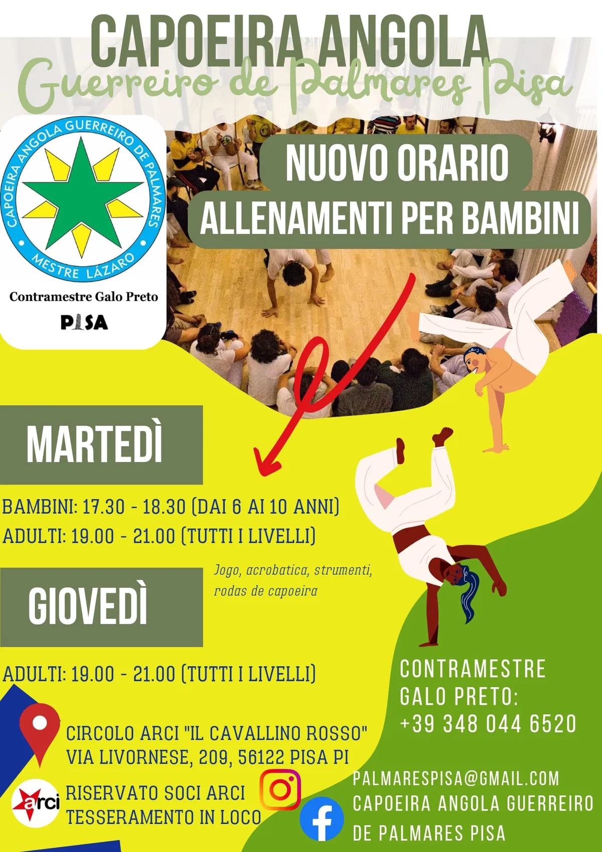 Sabato 30 novembre, presso il Circolo Arci "Casa del Popolo" a Campo, Pisa, a partire dalle 14 si svolgerà un workshop di capoeira 🤸🏻♂️ e danza 💃 con Mestre Omi.