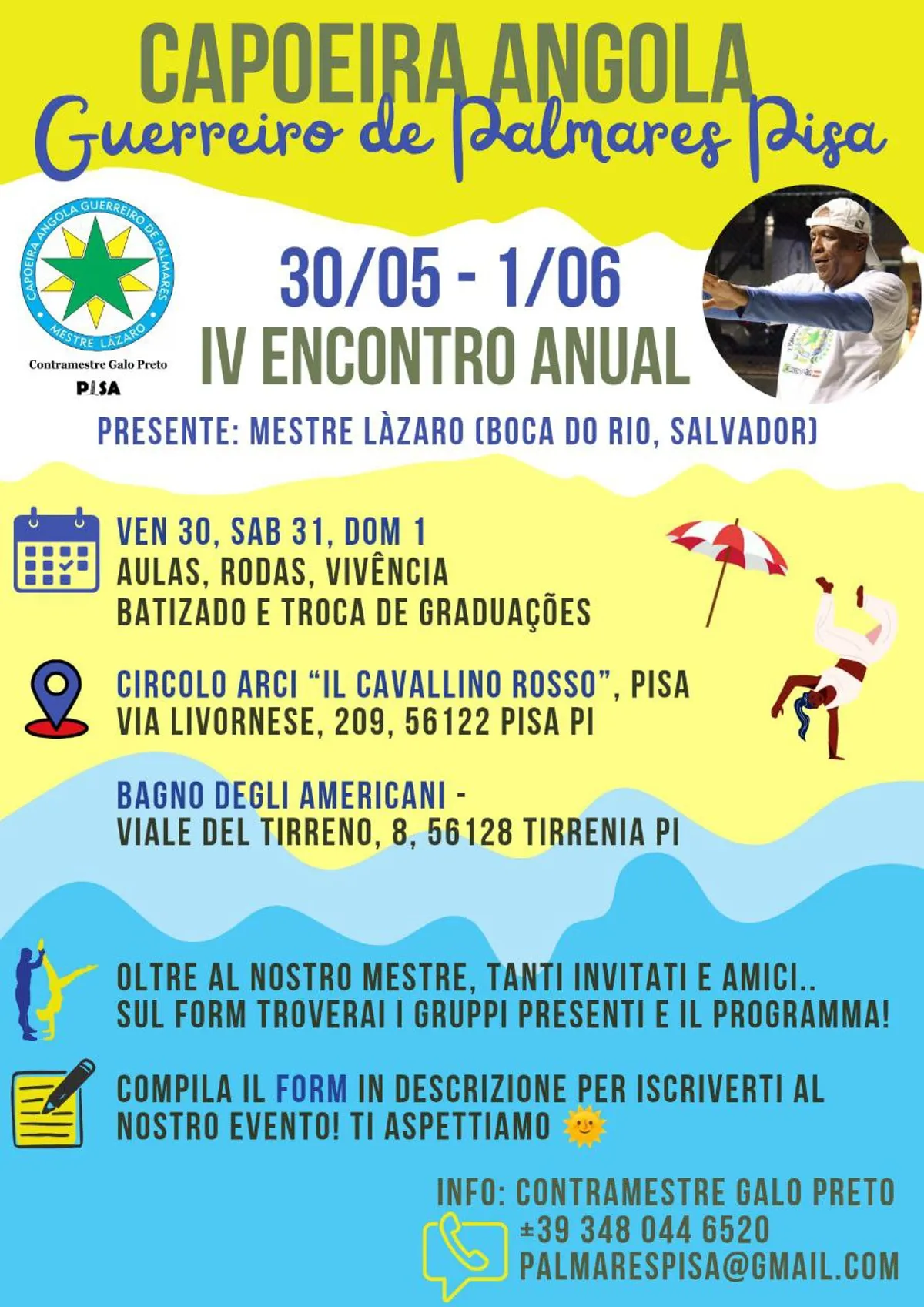 Il gruppo Capoeira Angola Guerreiro de Palmares Pisa è lieto di invitarvi al nostro quarto evento, con l’eccezionale presenza del nostro Mestre Làzaro e di tanti altri Mestres e cari amici.